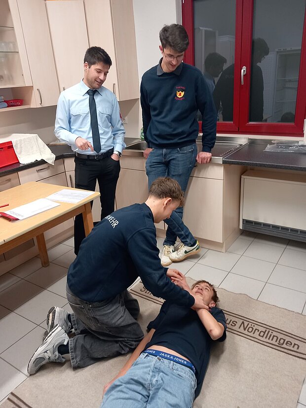 - Praktischer Teil: Erste Hilfe steht ganz oben auf dem Plan! Unsere Nachwuchskräfte zeigten unter den wachsamen Augen der Prüfer die korrekte stabile Seitenlage.