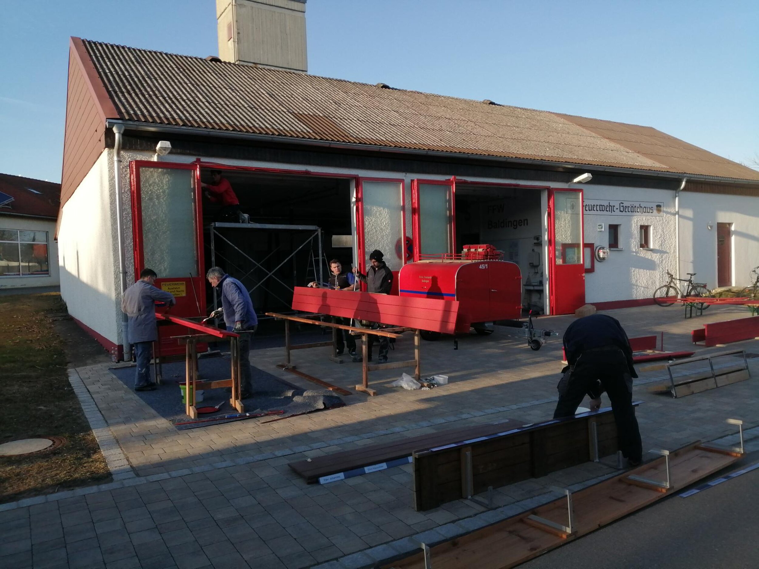 Deswegen wurde unter dem Motto "Unser Feuerwehrhaus soll schöner werden" eine großangelegte Maleraktion gestartet. Mit der tatkräftigen Hilfe der Kameradinnen und Kameraden wurde die komplette Garage geweißelt und ein dekorativer Schriftzug angebracht. Aber nicht nur das. Auch die kompletten Gardaroben wurden demonitert, gestrichen und wieder montiert. Ich denke das Ergebnis kann sich sehen lassen. Nocheinmal Danke an alle die so fleißig mitgeholfen haben.